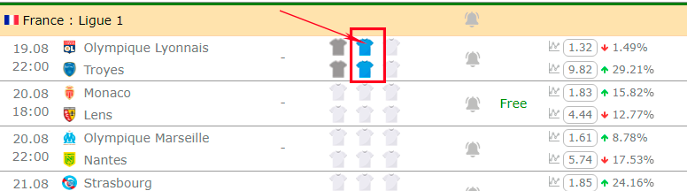 Наличие предварительных стартовых составов команд в разделе Превью матчей отмечается синей маечкой.