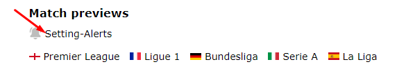 Если, вы хотите получать оповещение по конкретным лигам, то для этого необходимо в разделе Match previews в заголовке по Лиге кликнуть на "Колокольчик"